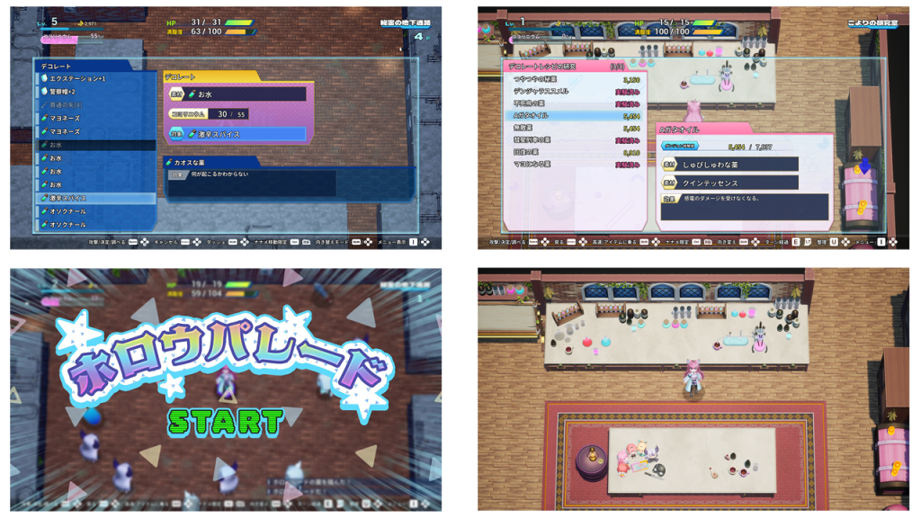 また、本作の特徴である「デコレート」システムは、主人公「博衣こより」の研究者としての頭脳を使い、武器や防具の性能を飛躍的に上げたり、新たな薬を調合するなど、ホロダンジョンでの窮地を打破する切り札にもなりえます。