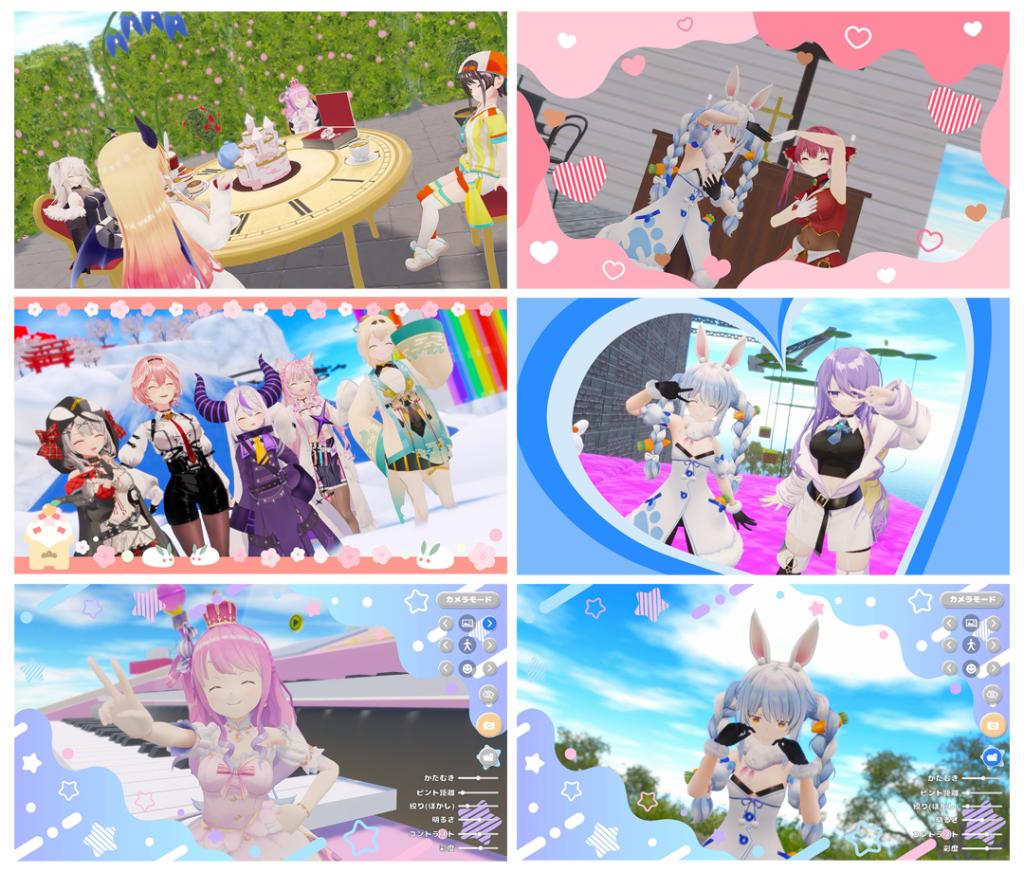 『はねホロ! アップグレード DLC』には、ジャンプアクションをゲームとして楽しむほかに、ゲーム内に登場するホロライブタレントのエピソードをモチーフにしたオブジェクトと、推しタレントで写真を撮影できるフォトモード機能があります。