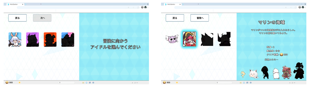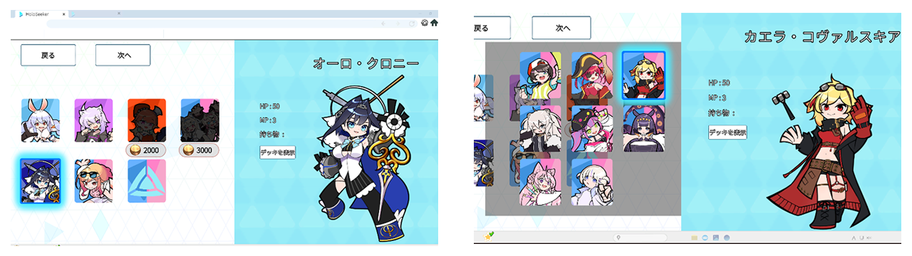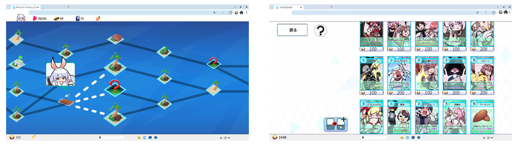 『HoloSeeker』は、固有の能力を持ったホロライブタレントにあわせてデッキを構築しながら、冒険マップの制覇を目指すローグライトRPGゲームです。