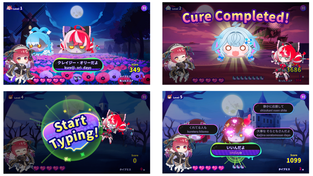 本作は、ホロライブ所属タレントたちの「ボイス」をタイピングする、新感覚のタイピングアクションゲームです。