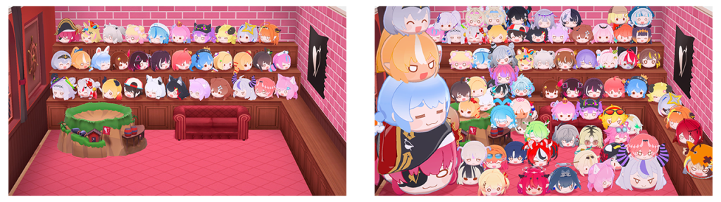救い出したメンバーやゲットしたお宝は、船長の「お宝コレクション部屋」に自由に飾って遊ぶことができます。お気に入りのメンバーを並べるもよし、同じお宝を部屋いっぱいに埋め尽くすカオスな部屋を作るもよし。あなただけの「推し部屋」を作り上げてください。