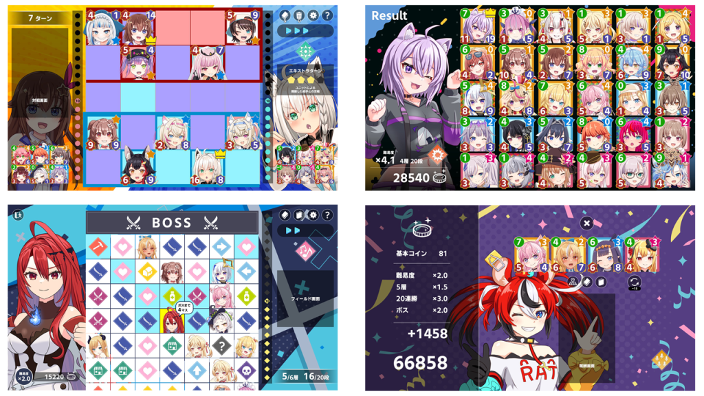 プレイヤーは自分の「推し」をキングとして選択。冒険の途中で出会うホロライブメンバーたちを仲間に加え、自分だけの最強のデッキを構築しながら、刻一刻と変化する盤面を攻略していきます。