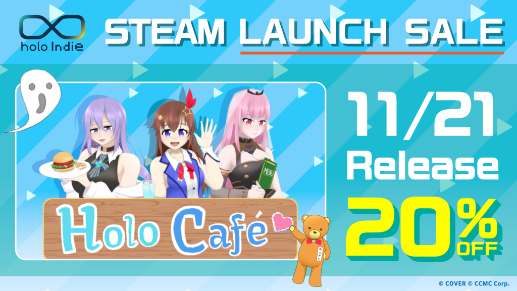 CCMC Co., Ltd. is pleased to announce the start of sales on Steam for “HoloCafe,” a cafe management simulation game developed by individual creator “Kevinfu510,” under the company’s hololive Production fan game brand, “holo Indie.” Simultaneously, we are announcing a launch sale where the game can be purchased at “20% OFF.”